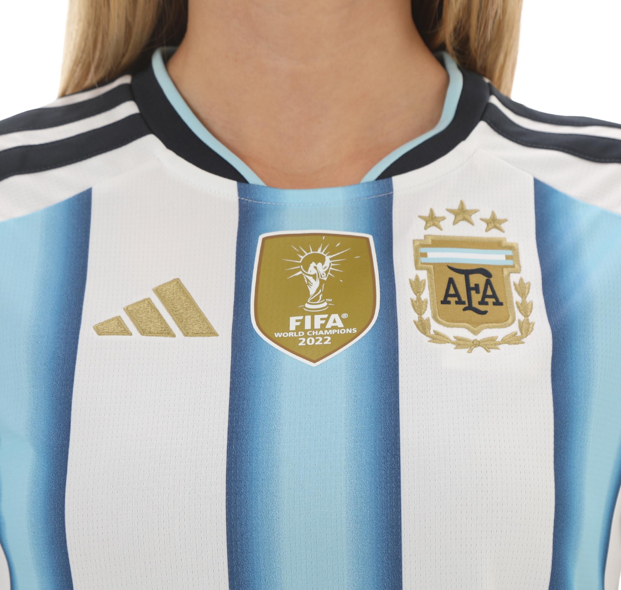 Şampiyonların tutkusunu Arjantin 26 İç Saha forması ile yansıt. La Albiceleste'nin ateşli ruhundan ilham alan bu forma, takımın gururla 3. şampiyonluk yıldızını taşıdığı ilk Dünya Kupası'nı simgeler. Bu model 1978, 1986 ve 2022 zaferlerine saygı duruşunda bulunan şık degrade tasarımıyla sade ama iddialı bir günlük stil sunar. Bu forma maç gününde uzun süreli konfor için dayanıklı çift plaka örme kumaştan üretilmiştir. Futbol mirasına bağlılığını hissettiren adidas detayları, saha kenarındaki enerjiyi zamansız bir stille bir araya getirir.