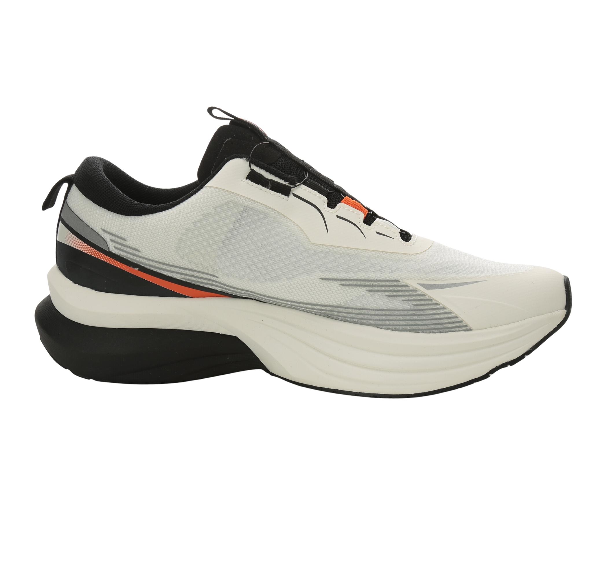 - Teknoloji: Devrim niteliğindeki kadranlı (dial) bağcık sistemi ile ayakkabınızı tek çevirmeyle mükemmel oturtun. Bu yenilikçi sistem, çözülme derdini bitirir, maksimum konfor ve kolay giyip çıkarma sağlar. Çift katmanlı taban yapısı (beyaz/gri degrade, siyah alt katman) üstün darbe emilimi ve enerji geri dönüşümü sunar.
