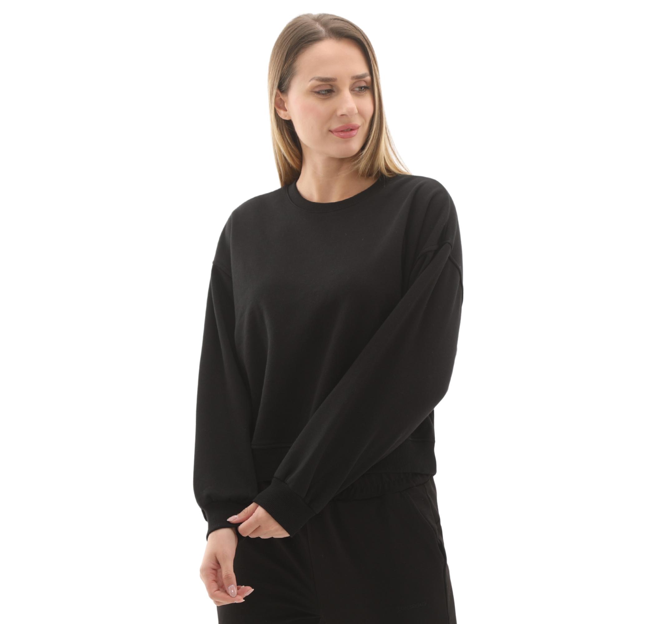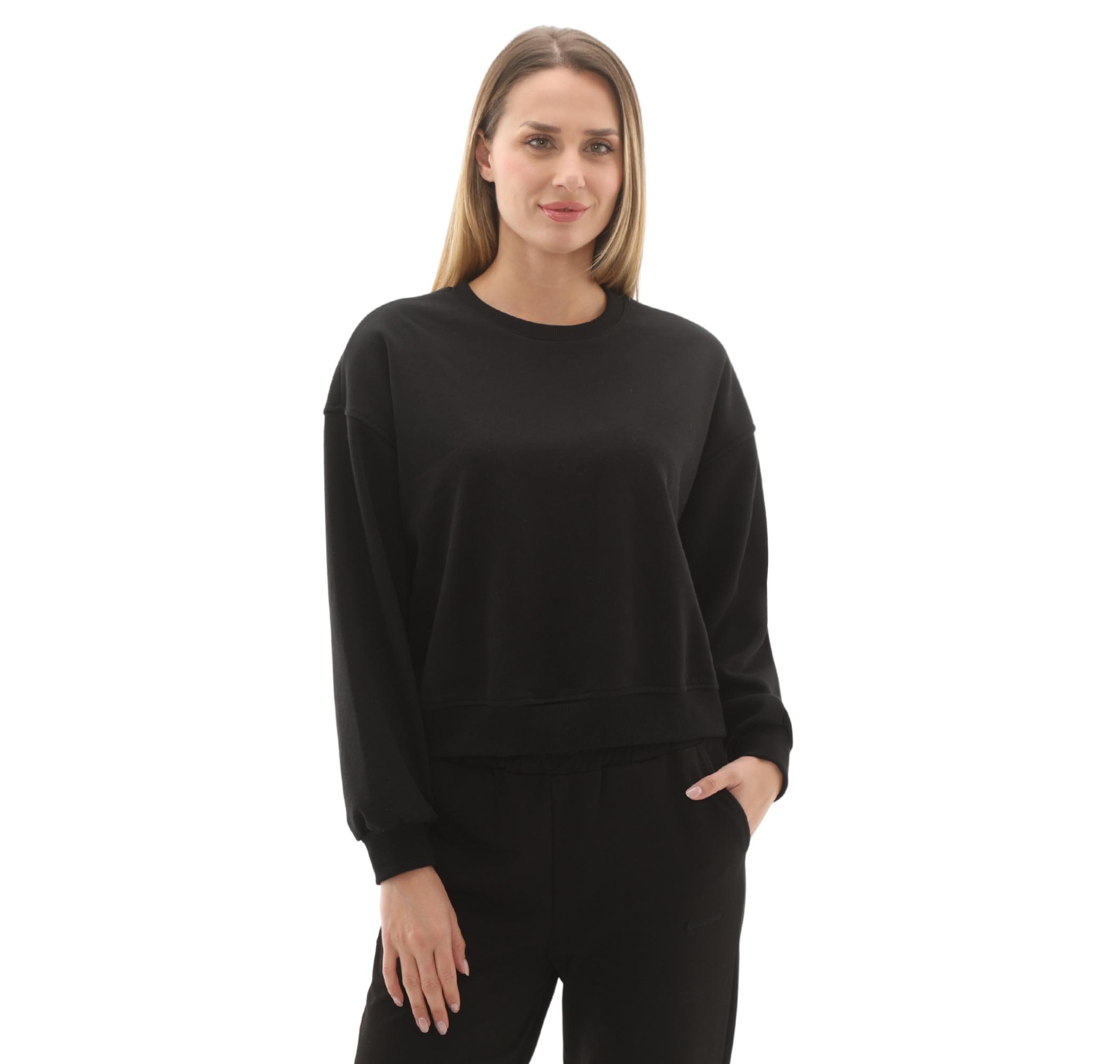 Rahat kesimi, yumuşak dokusu ve bisiklet yaka tasarımıyla gün boyu konfor sunar. Düşük omuzlu ve ribana detaylı manşetleri/etek ucu, sportif ve şık bir siluet oluşturur. Evde, sosyal aktivitelerde veya hafif egzersizlerde zahmetsizce kullanılabilir.