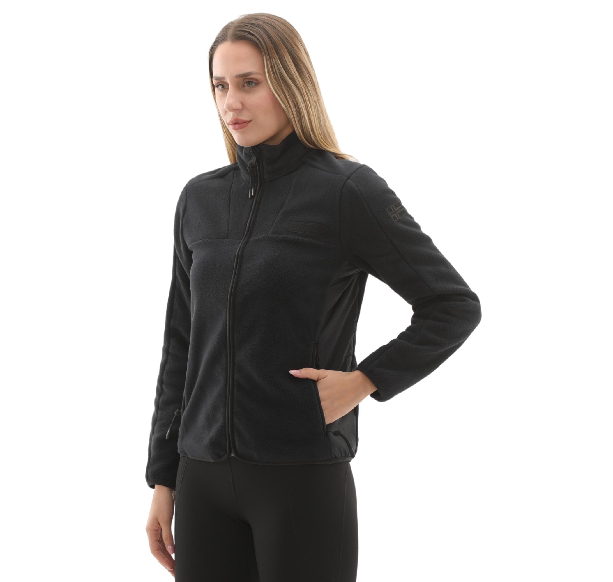 - Malzeme: Yumuşak polar ana gövde ve esnek teknik yan paneller, maksimum konfor ve hareket özgürlüğü sunar. Tamamı koyu siyah şık tasarım.